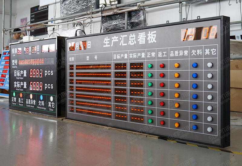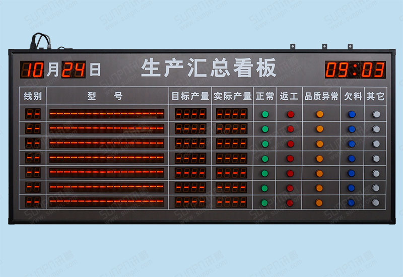 * 看板為子母屏結(jié)構(gòu),子屏采集生產(chǎn)線實(shí)時(shí)數(shù)據(jù)與現(xiàn)狀,母屏匯總車間所有生產(chǎn)線看板數(shù)據(jù);