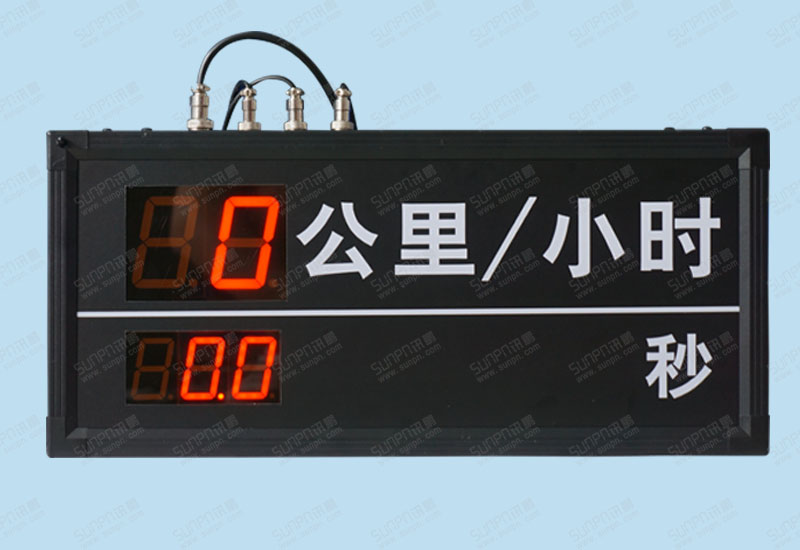 第三個光電功能:當觸碰到第三個光電開關時,看板停止計數,通過公式算出當前速度,計秒欄停止計時,顯示當前通過所用秒數