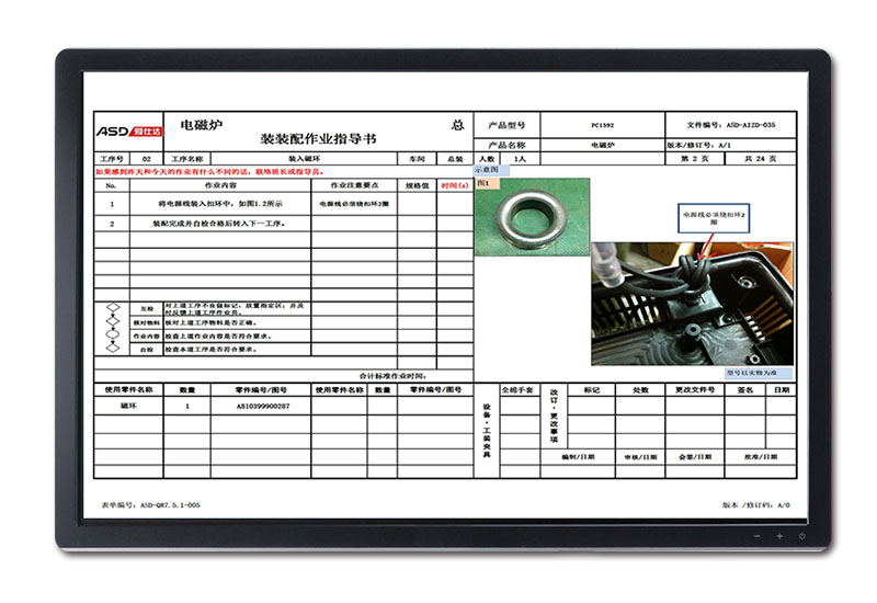 隨著網絡信息化的發展,液晶顯示終端的價格合理化,誕生了電子化SOP作業指導書系統,這種新型電子化SOP的優勢,迅速覆蓋了全國大型企業使用。越來越多的企業關注,電子數字化管理使用頻率高,換線速度快, 顯示出生產現場的大方整潔提高企業型像, 生產線規范,可實現生產線的無紙化。