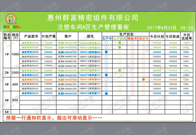 3、機臺編號、噸位、產品信號、計劃產量、客戶、顏色、今日計劃通過后臺軟件手動下發。