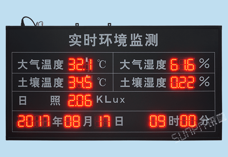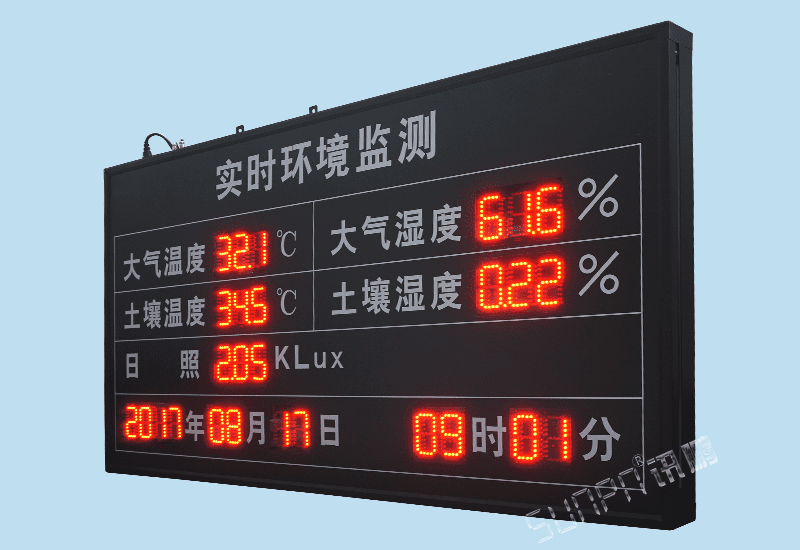 在農(nóng)業(yè)上土壤濕度決定農(nóng)作物的水分供應(yīng)狀況。土壤濕度過(guò)低,形成土壤干旱,作用光合作用不能正常進(jìn)行,降低作物的產(chǎn)量和品質(zhì);嚴(yán)重缺水導(dǎo)致作物凋萎和死亡。土壤濕度過(guò)高,惡化土壤通氣性,影響土壤微生物的活動(dòng)。而實(shí)施環(huán)境數(shù)據(jù)監(jiān)測(cè)LED電子顯示看板溫濕度電子看板可以監(jiān)測(cè)土壤溫濕度,讓人們進(jìn)行調(diào)節(jié),豐富產(chǎn)出。