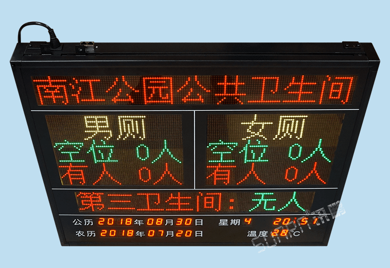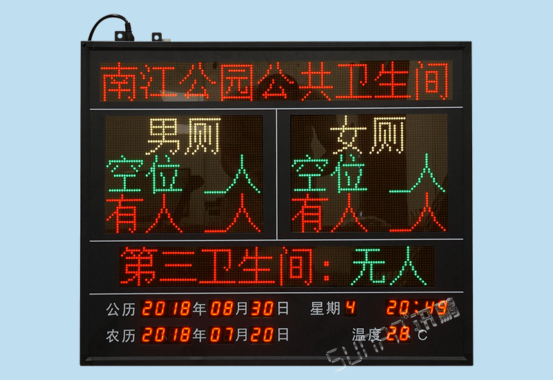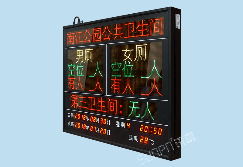 訊鵬衛(wèi)生間有人無(wú)人蹲位使用狀態(tài)匯總信息采集LED顯示屏系統(tǒng)有多項(xiàng)功能: