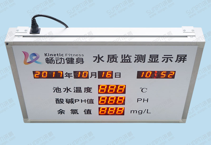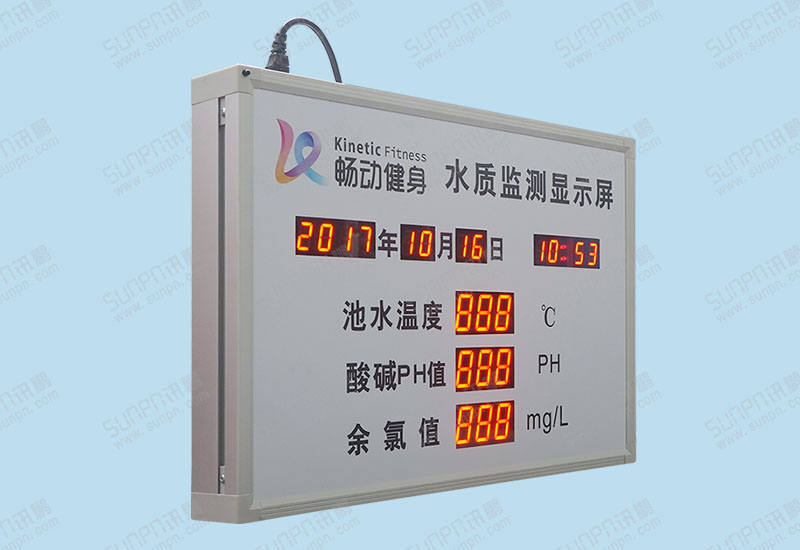 訊鵬游泳館水質(zhì)監(jiān)測(cè)LED顯示屏池水溫度濕度酸堿度余氯ph值乾方位采集,保障您有一個(gè)舒適游泳環(huán)境