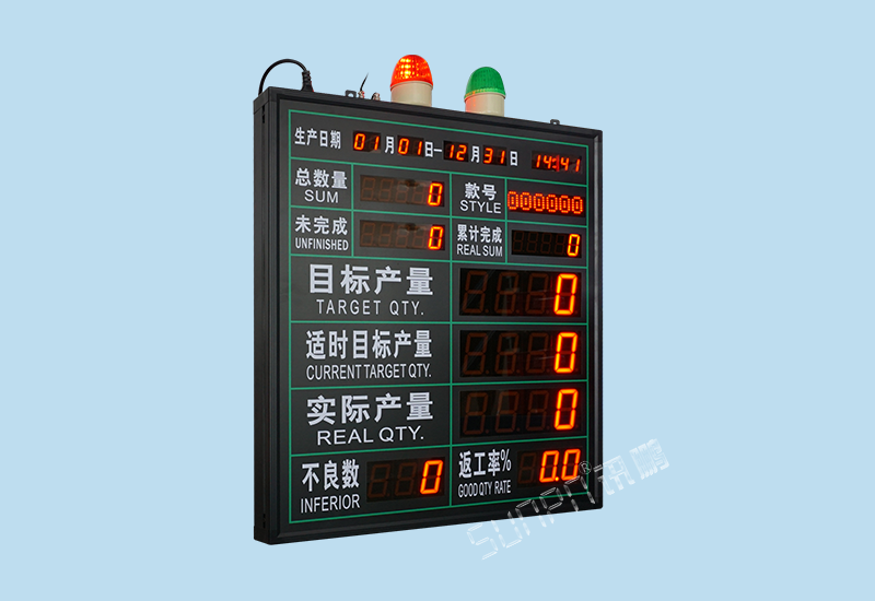 單機版LED生產管理看板是最簡單的一種生產管理工具,他只由工位觸發硬件(計數按鈕盒、光電開關、PLC等)、顯示看板(點陣看板、數碼管看板)組成。只作為單條產線數據采集的目視化管理。