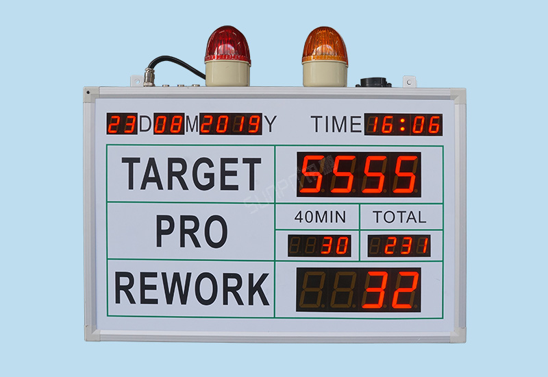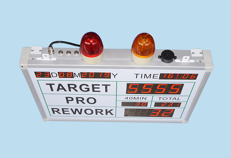 單機版LED生產(chǎn)管理看板是最簡單的一種生產(chǎn)管理工具,他只由工位觸發(fā)硬件(計數(shù)按鈕盒、光電開關、PLC等)、顯示看板(點陣看板、數(shù)碼管看板)組成。只作為單條產(chǎn)線數(shù)據(jù)采集的目視化管理。