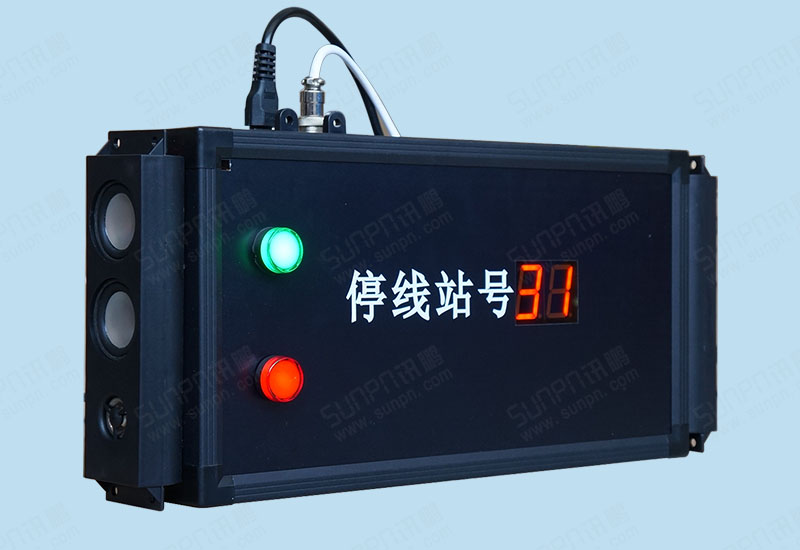 看板通過PLC提供8個開關(guān)輸出量控制顯示屏的顯示與聲音播報: